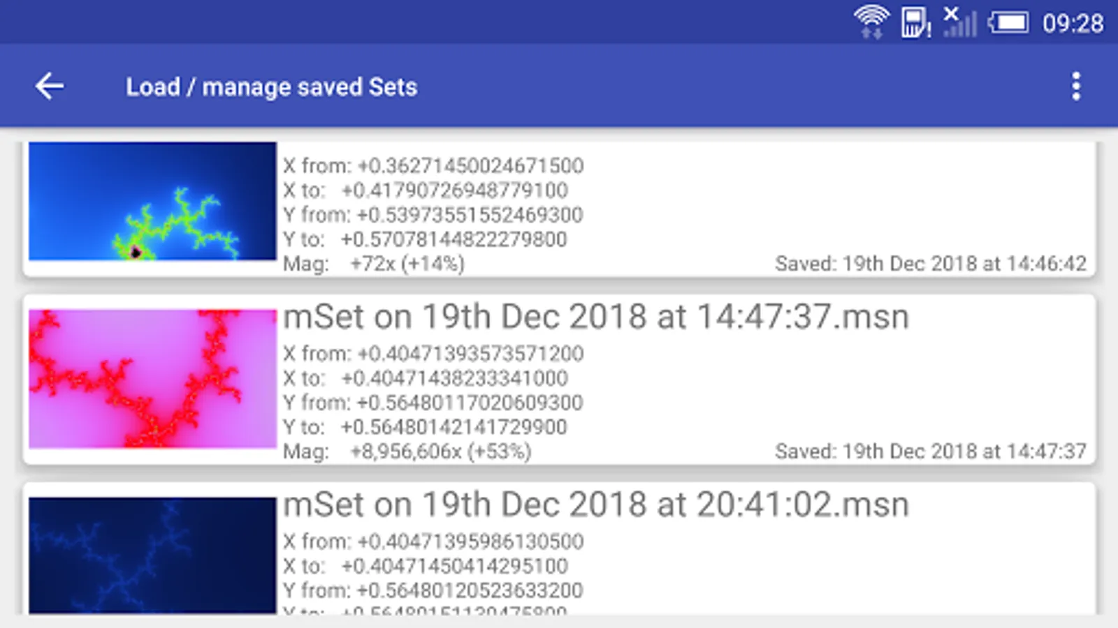 Share Sets - share pictures or share Set coordinates with other users of Mandelbrot Set Navigator, or share to your other devices.