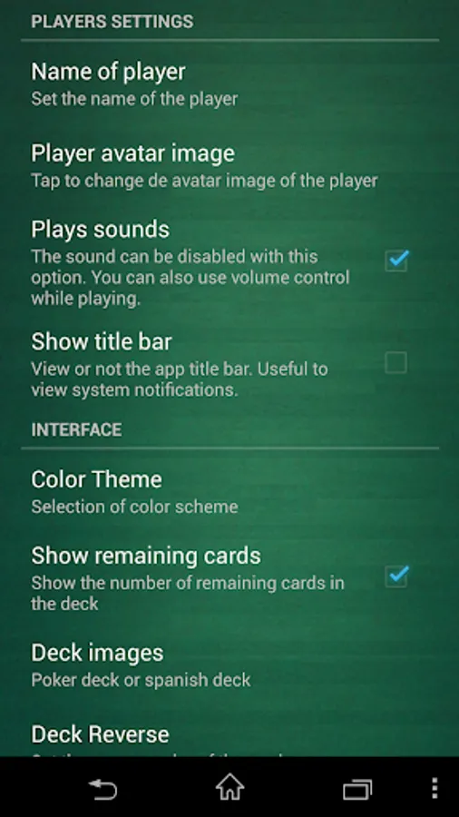 ✔ Many settings to customize (Themes, reverse of cards, cards size, ...)