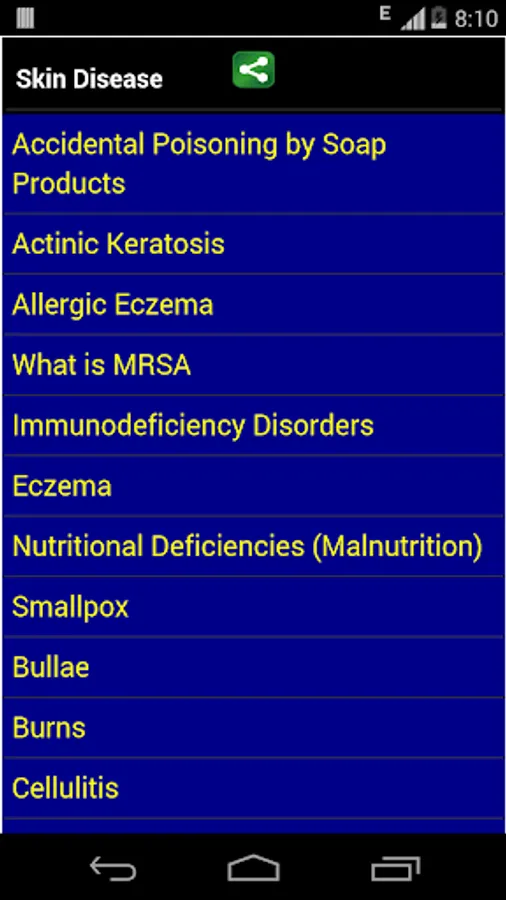 Best comprehensive overview covers the symptoms and treatment of skin disease. This app has been developed for everyone, all topics has been made to make it complete, useful and interesting.