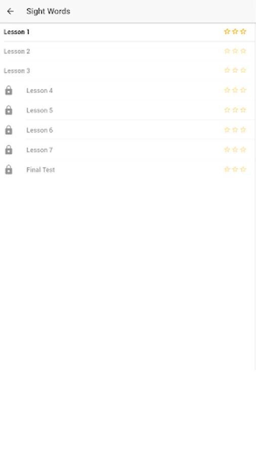 The Lesson will only be playable if they previous lesson was passed with at least 2 start (75%).
