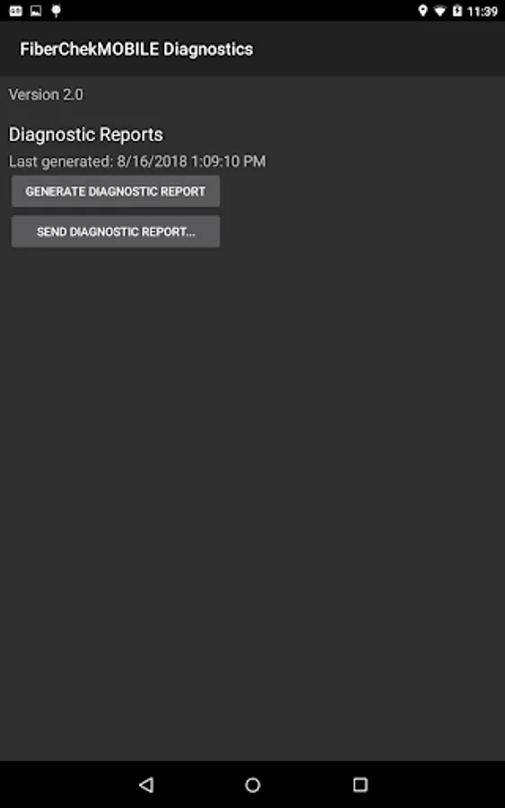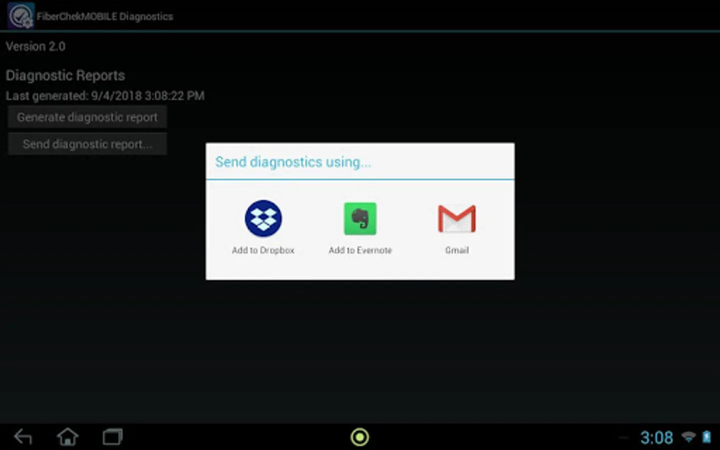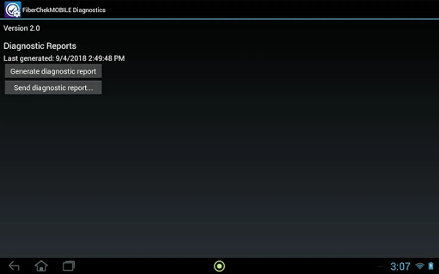 FiberChekMOBILE Diagnostics is an easy-to-use application for sending bug reports to the FiberChekMOBILE development team.