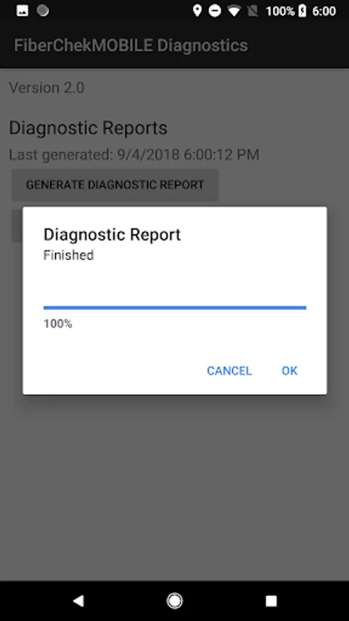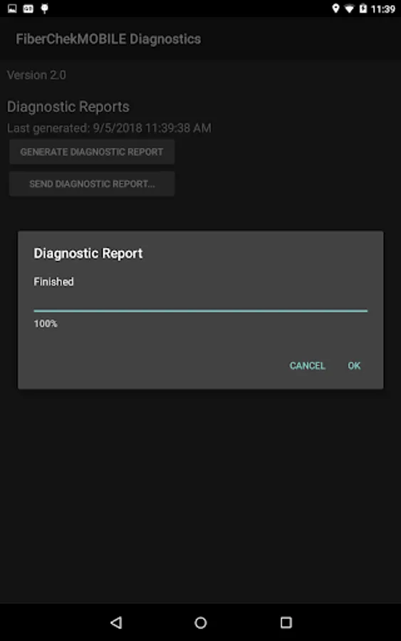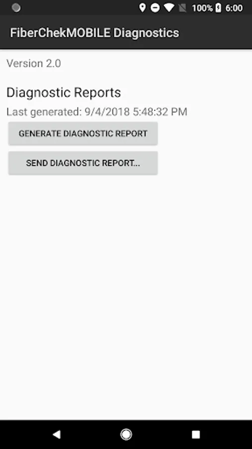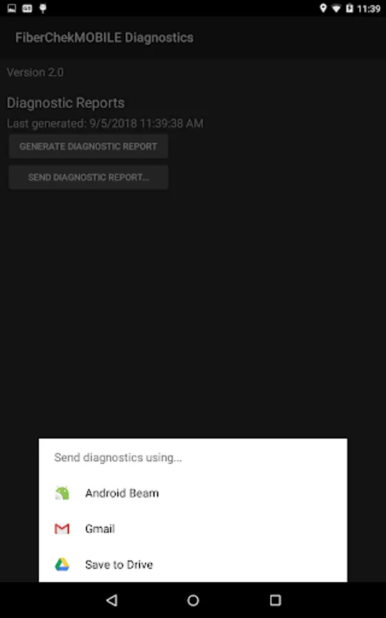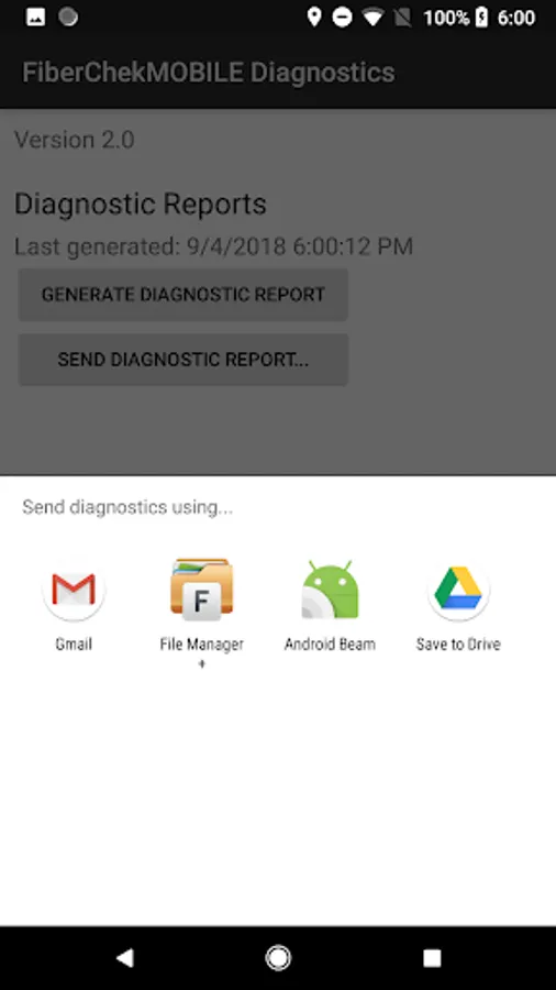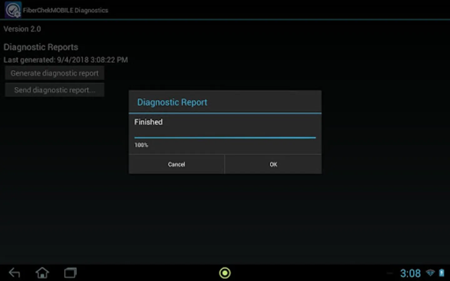 FiberChekMOBILE Diagnostics is an easy-to-use application for sending bug reports to the FiberChekMOBILE development team.