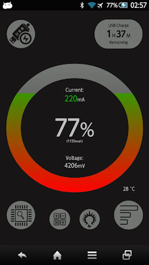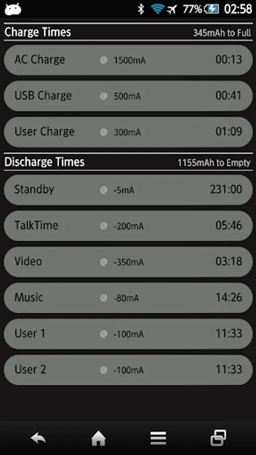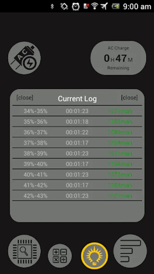 Simple easy to read charge current meter with time to charge or discharge at current rate.