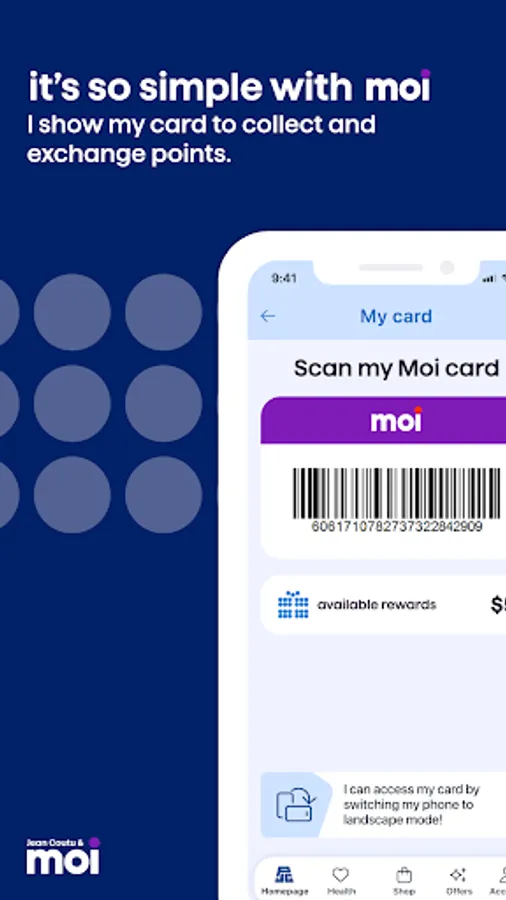 - Have my Moi card at all times to collect and redeem my points immediately in store