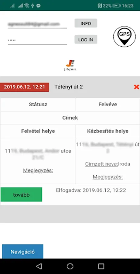 JE - Futár App Screenshots