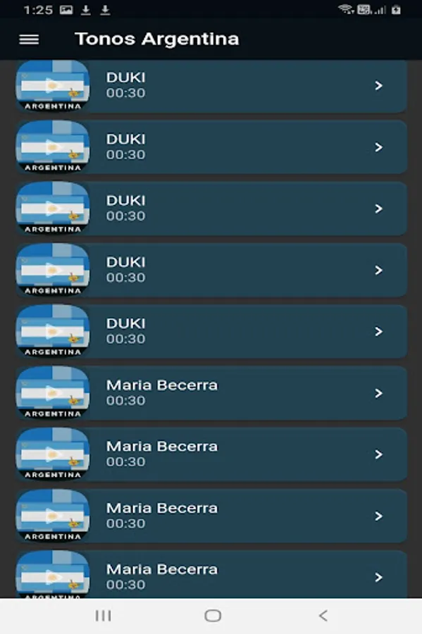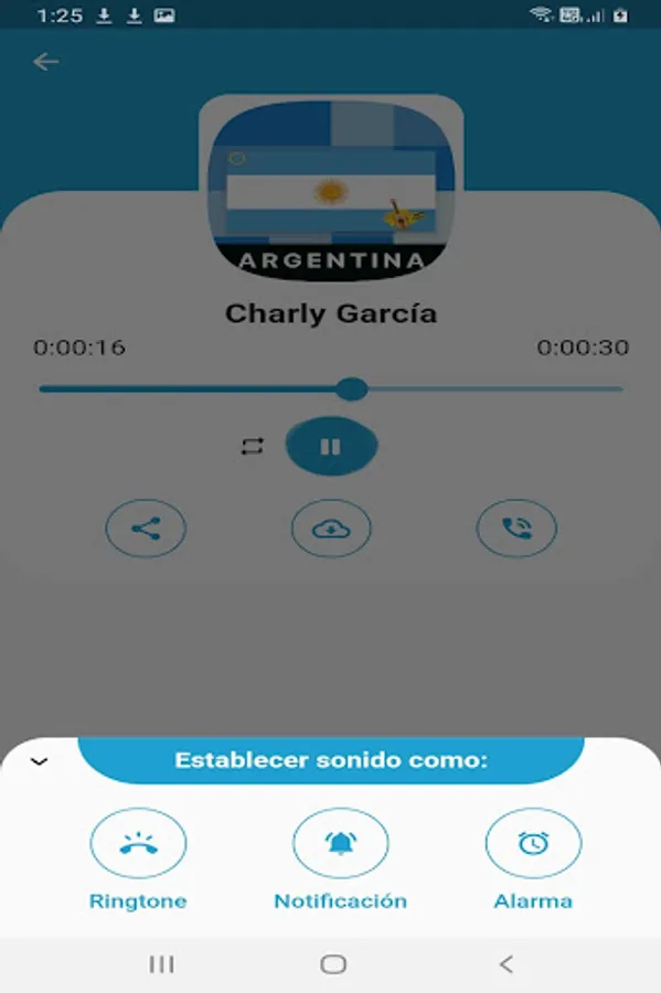 You can now download listen to the Argentina Tones for your cell phone in this Free ringtone application, where you will find the best ringtones, free Argentine sounds, music ringtones of Argentine music tones for the phone 2022; In this application you will find ringtones to listen to free notifications, tones of Argentine music tones like tangos, free zamba ringtones free to download, Free Argentine Music ringtones for calls, you can listen to all the malambo music tones Argentine music tones: music from Argentina chamarrita music by various artists such as: Charly García, DUKI, Maria Becerra, Prince Royce, reik, Wos among others.