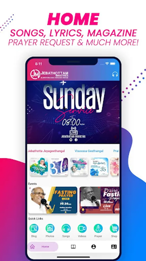 Jebathottam App is the official app from Jebathottam Ministries. It helps you to connect with Fr.S.J.Berchmans and Jebathottam Ministries. Mainly it gives you quick access to the rich collections of Jebathotta Jeyageethangal songs, lyrics, and videos.