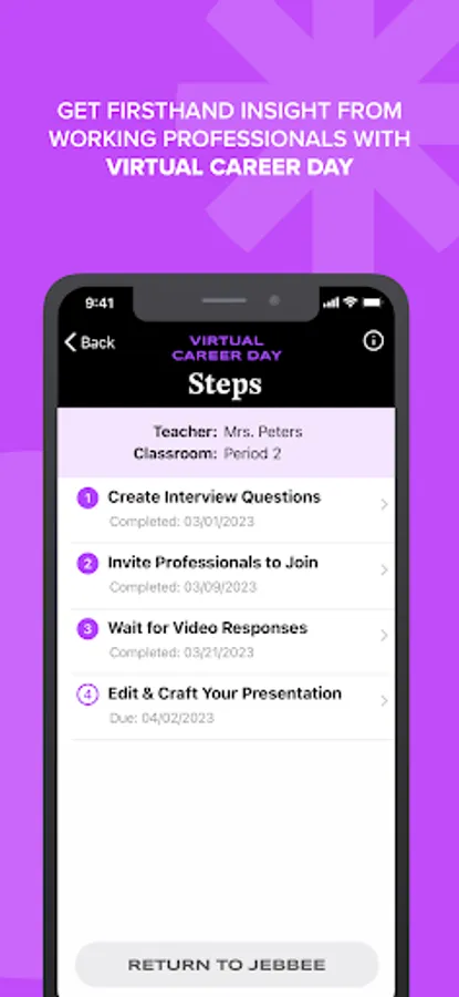 Jebbee is a fun and engaging interactive platform designed to connect young people with real working professionals across every industry and profession. Students can explore their future possibilities, gaining the knowledge and insight to make informed education and career decisions. Jebbee enables students to take control of who they’ll be and what they’ll become, giving them the confidence to take that next step towards their future career.