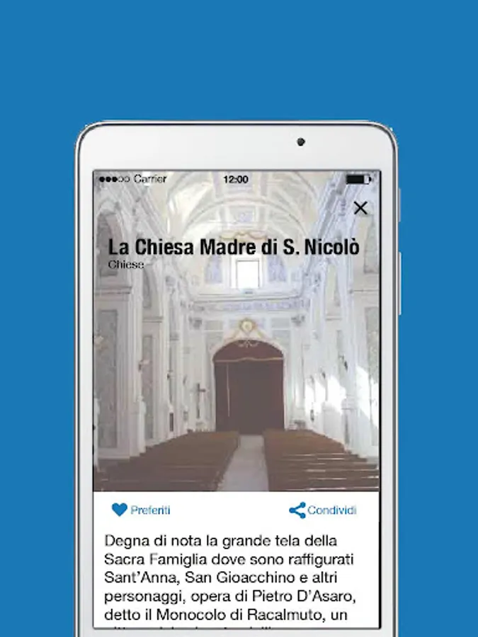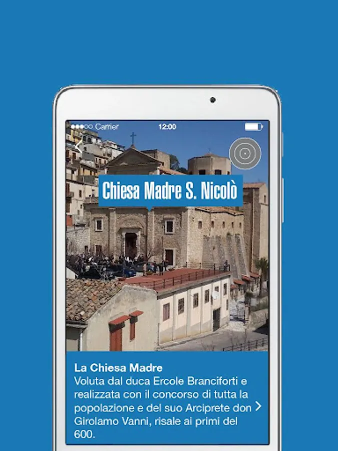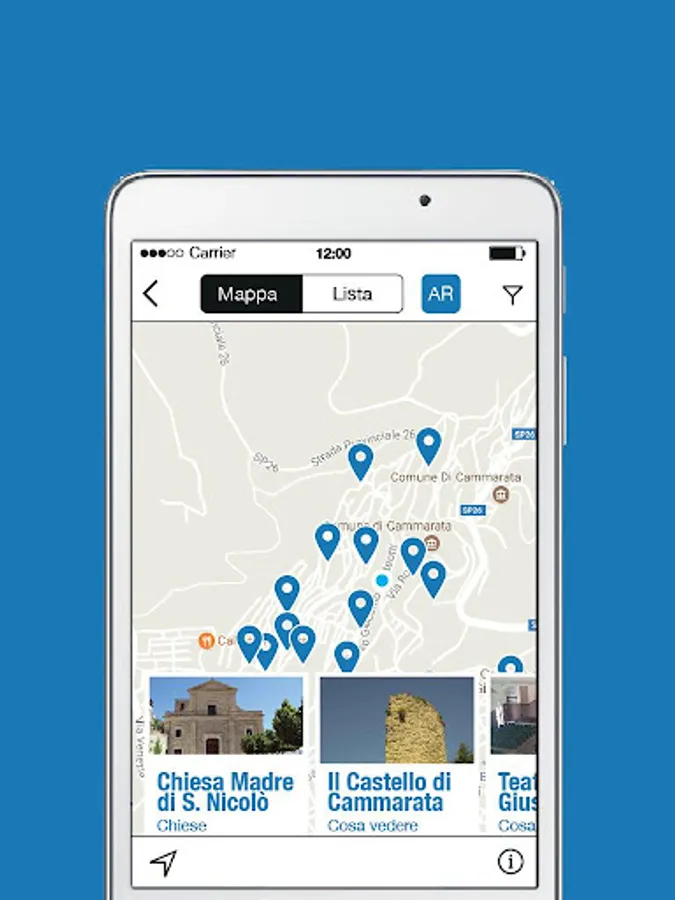 A digital instrument designed for visitors, who can discover nature, culture, history, tradition and cuisine of excellence cammaratese territory. But not only! With the app, the citizens of Cammarata will consult the calendar of events planned on the territory of the Municipality and receive push notification that signal event of great importance and the news published on the City of Cammarata website
