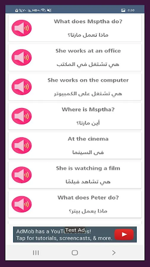 The application contains more than 2000 spoken sentences to learn the English language, it is divided into sections and also contains more than 1000 English words with pronunciation to make it easier for you to learn the English language