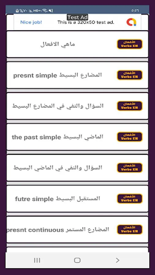 * The English language application contains the lessons of verbs in the English language, all the verbs of the English language, the time, the method of their formation, the negation and the question