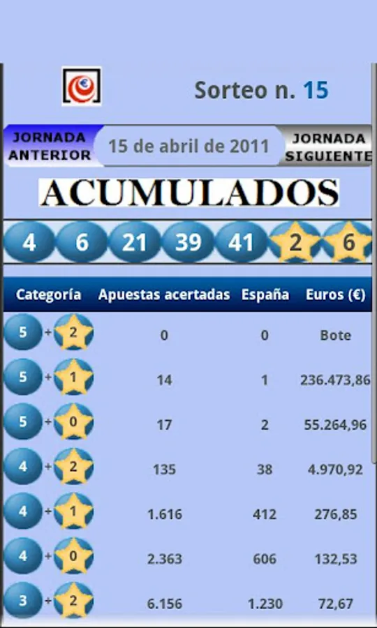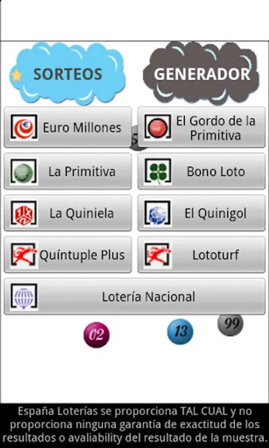 España Loterías collect all the results direct from the oficial website(www.onlae.es). All the information that we have in the website could be view in your mobile!