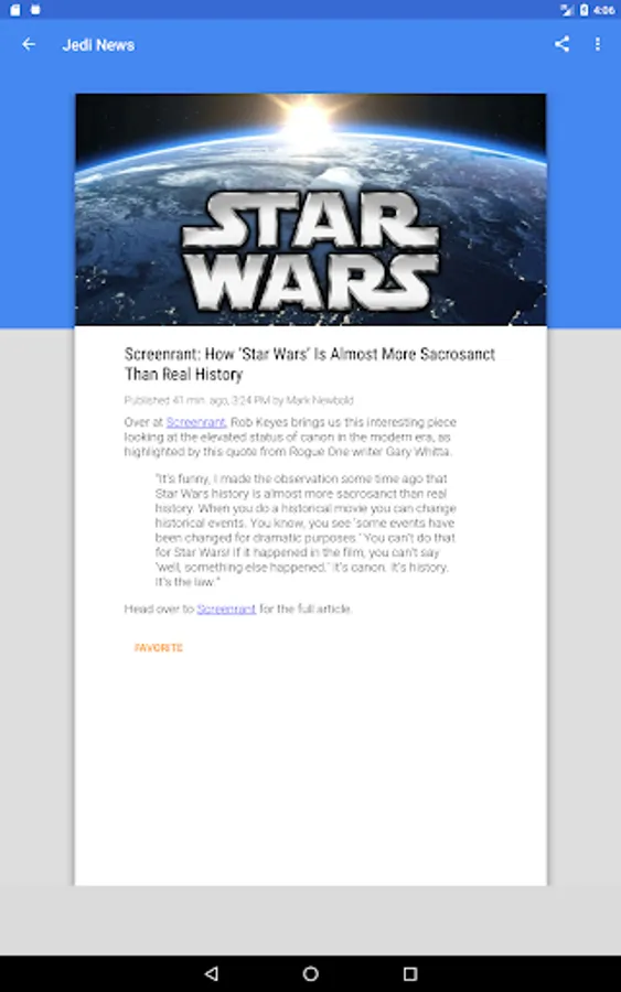 The Jedi News App is now Gathering News From Across The Galaxy On Your Android device....