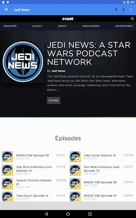 Get a feed of the latest Star Wars news direct to your mobile device, view our full website within the app, find and browse our YouTube channel, and listen to the latest podcasts from the Jedi News Network.