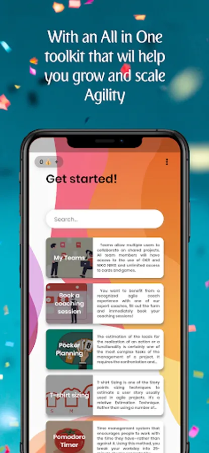 Made by Agile maniacs to serve the agile transformations inside your organization. Whether you are an Agile Coach, Product Owner, Scrum Master or Agile development team member, this app is made with care to get access to different agile toolboxes, agile games and resources that are crucial for your organizational's continuous learning culture.