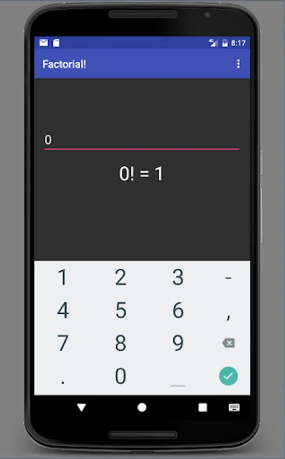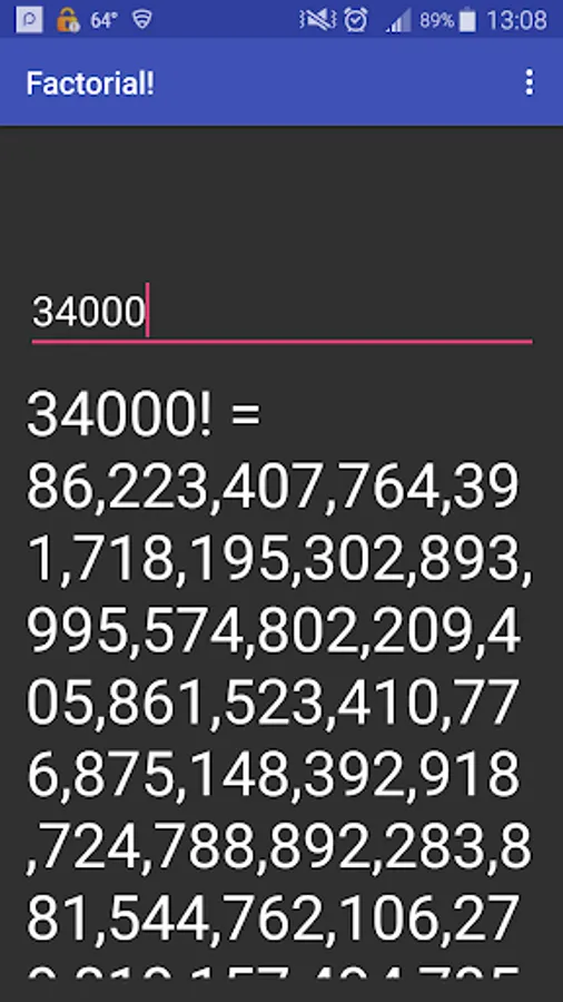 This factorial calculator solves the n! from zero(0) to five(5) small digits. Scroll on the answer with large result.