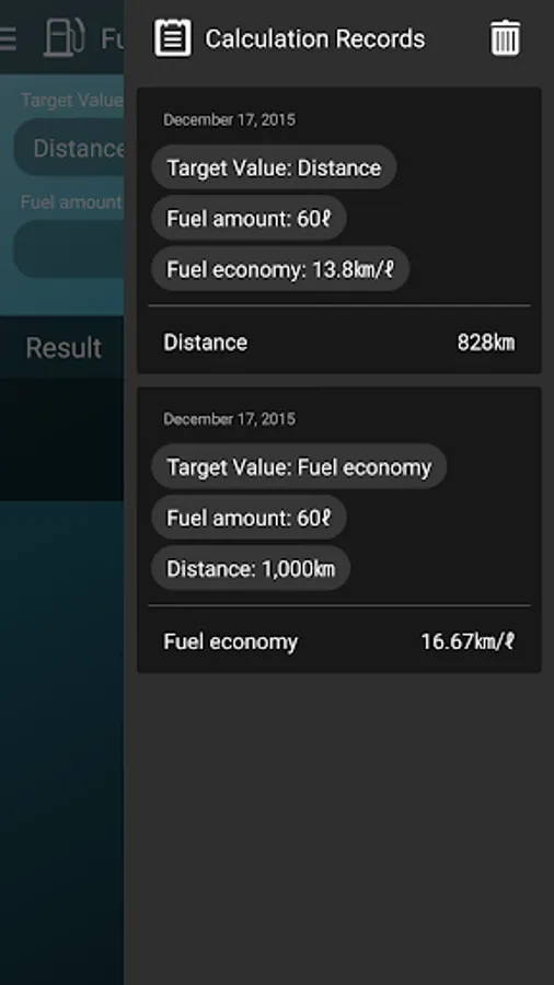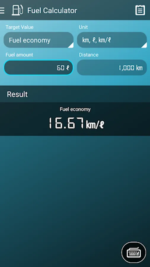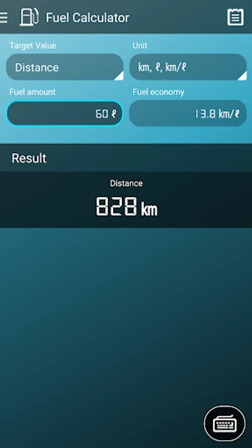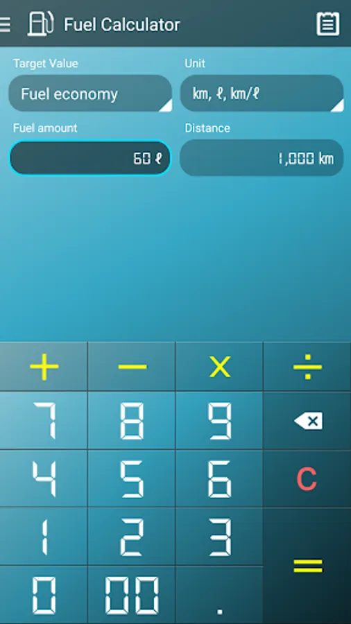 You can calculate Fuel economy, Distance, Expected fuel amount & cost