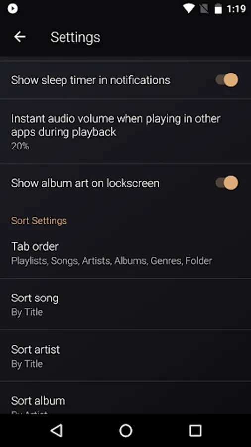* Provides playing next song by shaking and Sleep timer