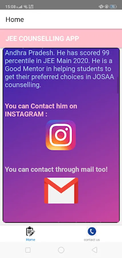 the app guides a student to contact their desired mentors and get correct counselling preference order for their choice filling.