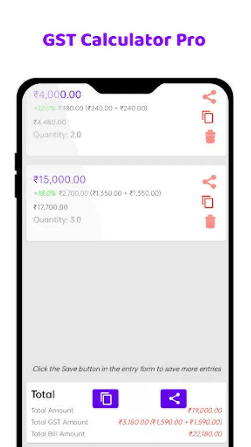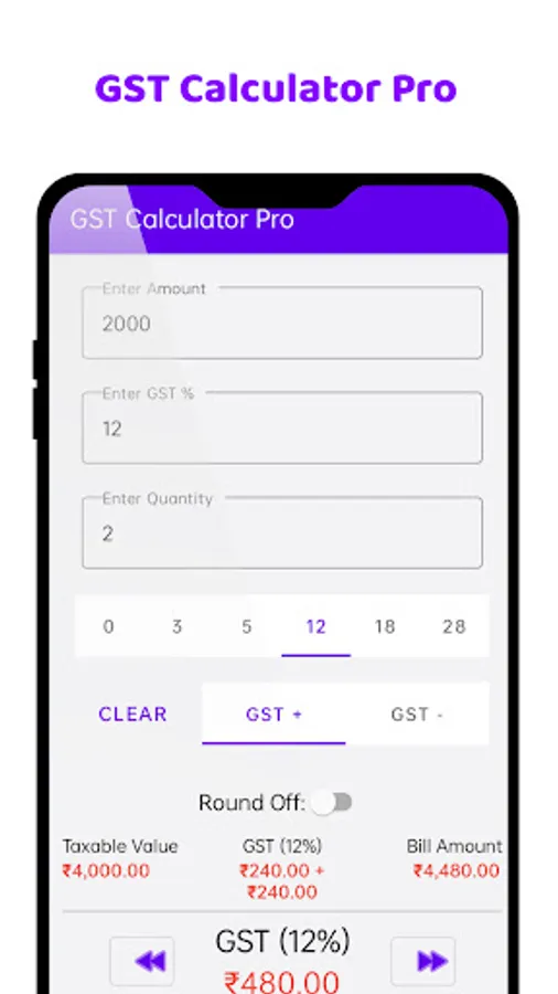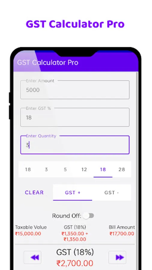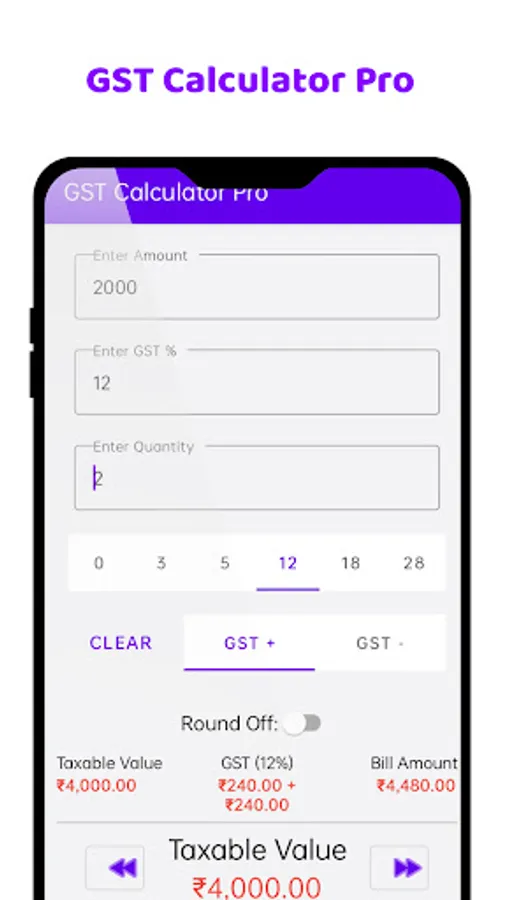 - Enter Respective Values for each Field and define either you want to GST + or GST -