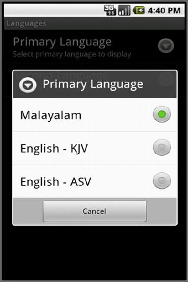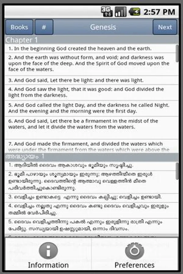 First Unicode Malayalam Bible for Android with English KJV and ASV versions.
