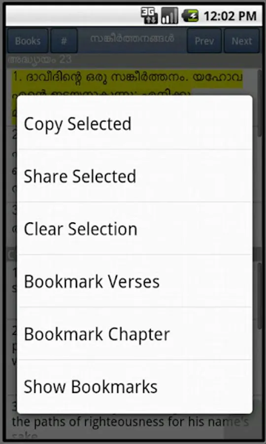 Copy/Share/Bookmark verses. Swipe left/right for chapter navigation.