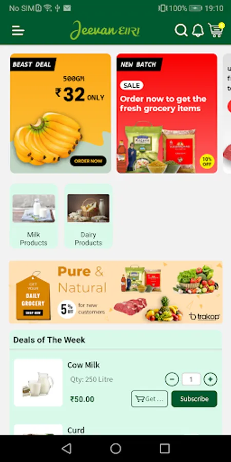 Jeevandhara mobile application for Milk is a user friendly application, which allows one to explore the products, manage orders, add subscriptions, place one time orders, make online payments for contact less deliveries. Place your order once according to required schedule, then sit back and relax we will deliver at your doorstep without any hassle. You can change your requirements at anytime.