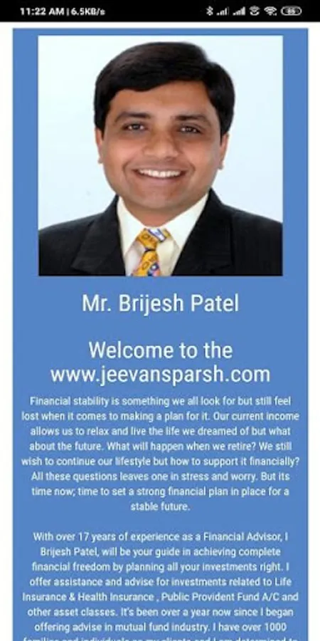 I Brijesh Patel, will be your guide in achieving complete financial freedom by planning all your investments right. I offer assistance and advise for investments related to Life Insurance & Health Insurance , Public Provident Fund A/C and other asset classes. It’s been over a year now since I began offering advise in mutual fund industry. I have over 1000 families and individuals as my clients and I am determined to help many more in the years to come.