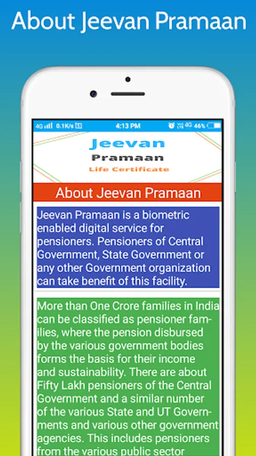 ✓Jeevan Pramaan is a biometric enabled digital service for pensioners. Pensioners of Central Government, State Government or any other Government organization can take benefit of this facility.