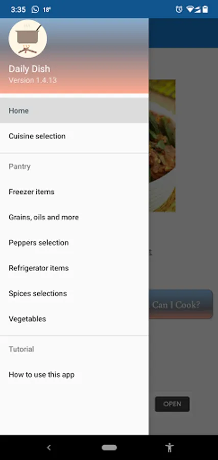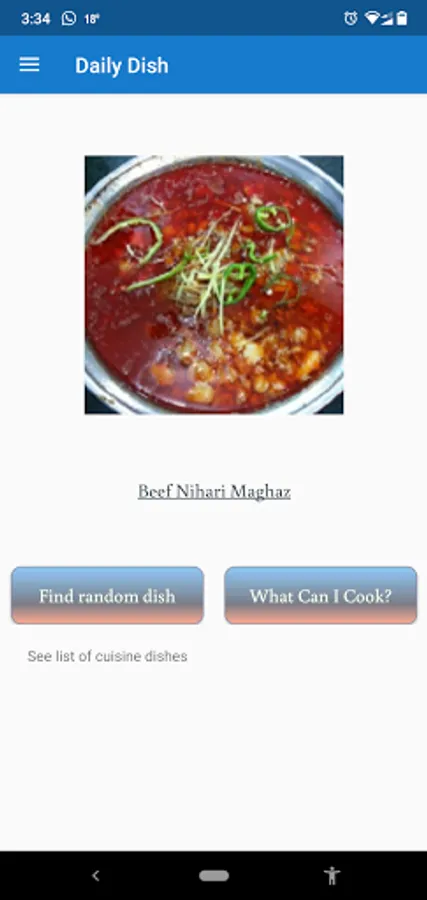 Find dish and cook based on your pantry items today!! This app can suggest you random dish from your choice of cuisine or random dish based on your pantry items. If you want to know how to cook that item simply tap the dish name ! Currently it supports Pakistani, Indian, Bangladeshi and Mediterranean cuisines for pantry based dishes. Italian cuisine has recipes available, Chinese cuisine only lists names. We are working on adding other cuisines pantry options. For any dish addition / cuisine options or any mistake in veg/non-veg category please feel free to contact us.