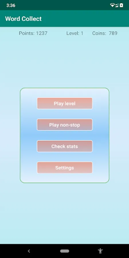 Challenge yourself with words catching letters one at a time, the game starts easy with two letter words and becomes difficult as you progress. Fun and challenging for all ages. You can challenge yourself with progressively difficult levels or words, or you can challenge yourself with random-length words, or you can pick word length i.e. 4-letter words and just keep playing.