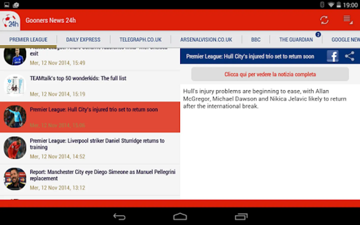 Simply the best! 24h News for Arsenal mashes up news from newspapers and web portals about Arsenal in a single app!
