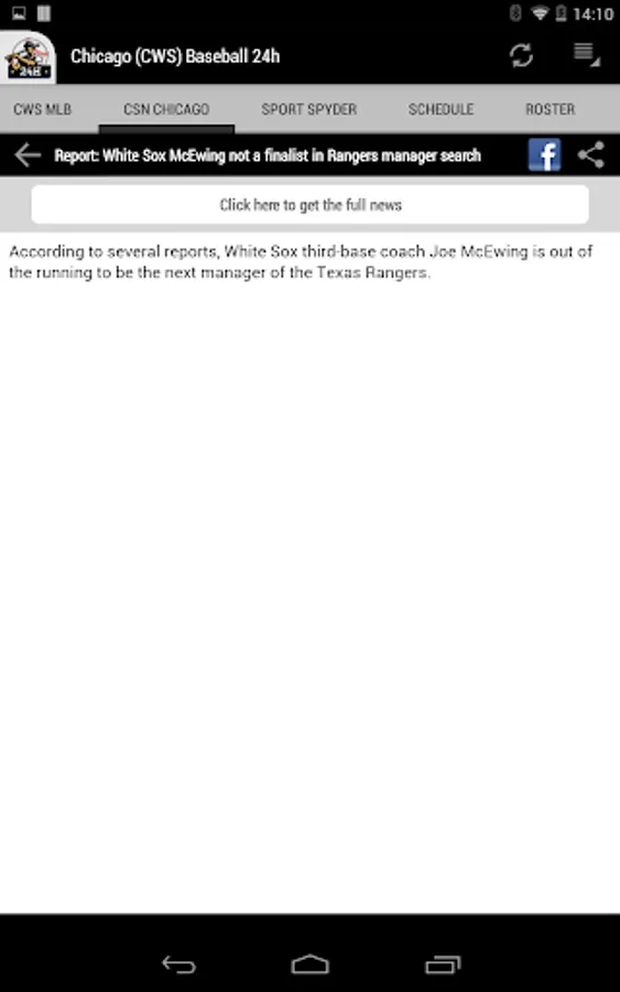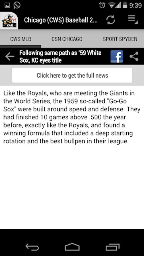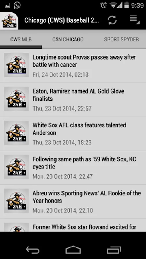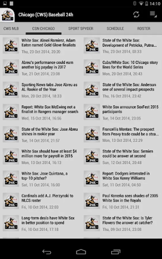 Simply the best! Chicago (CWS) Baseball 24h mashes up news from newspapers and web portals in a single app!