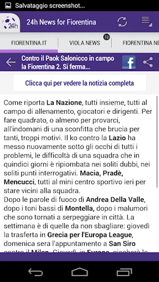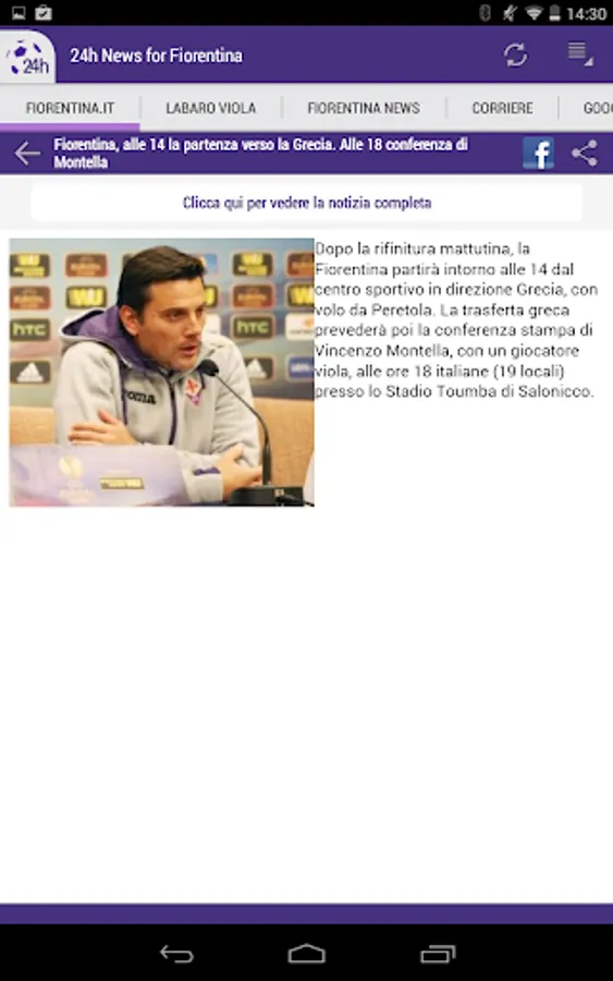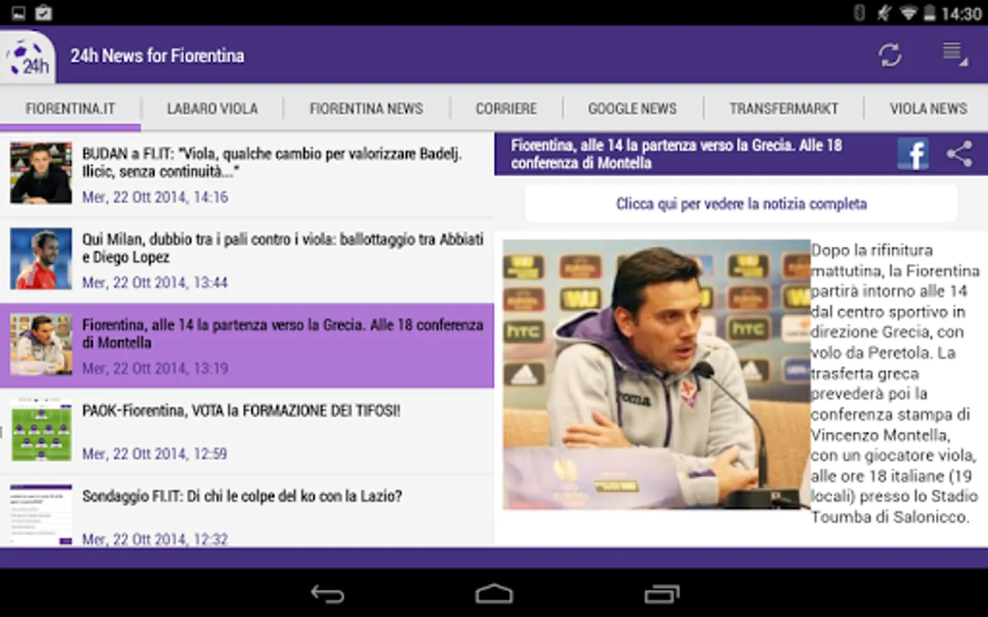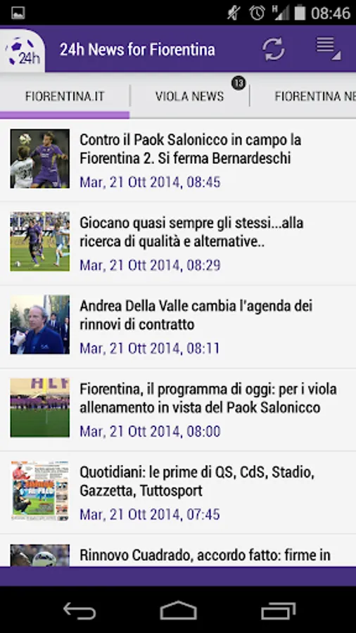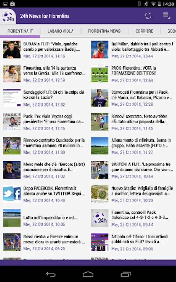 Simply the best! Fiorentina 24h mashes up news from newspapers and web portals in a single app!