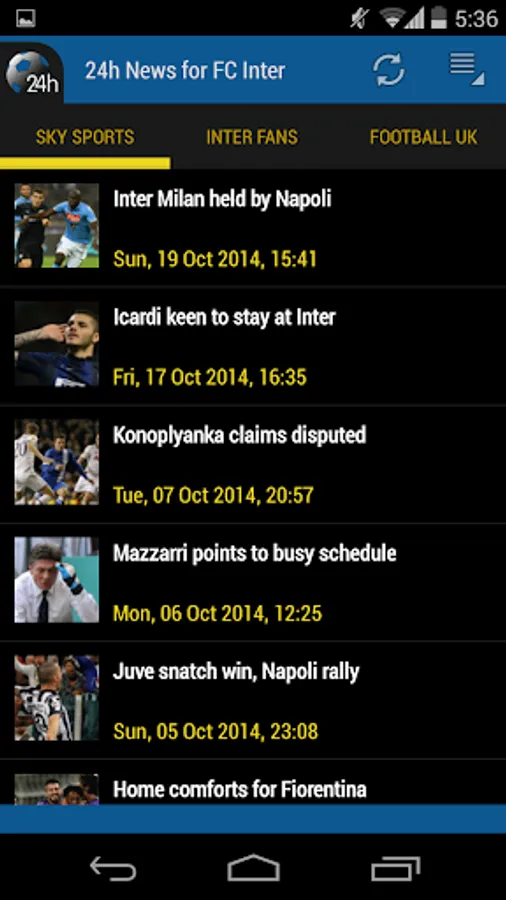 Simply the best! FC Inter 24h mashes up news from newspapers and web portals in a single app!