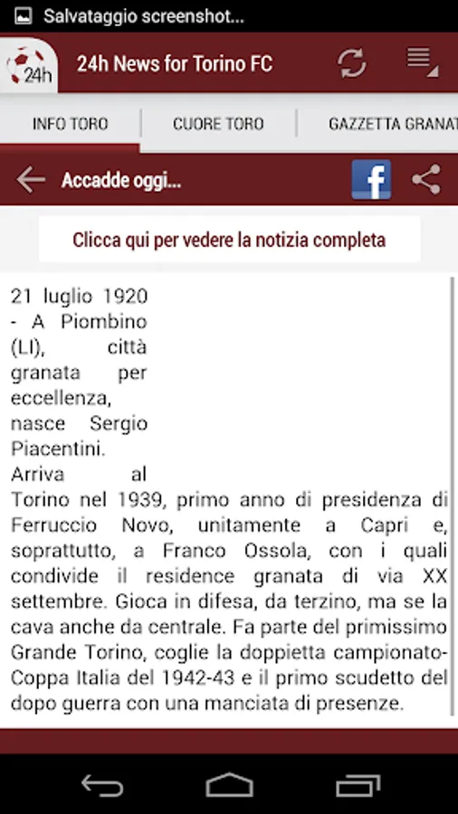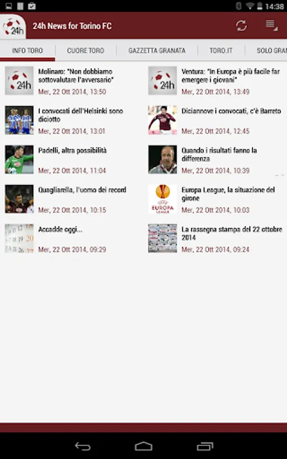 The only 24 hours! The first 24 hours! All the others came later! The best! Turin FC 24h combines the major newspapers and news portals in one place!