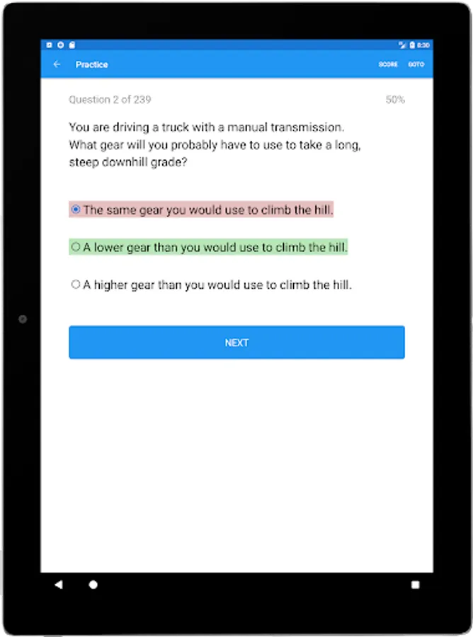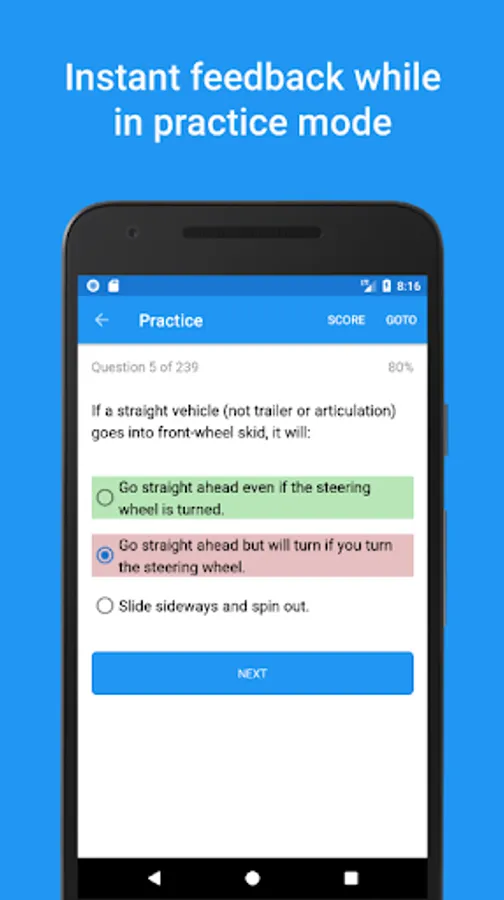 3. Practice Mode - Answer questions and receive instant feedback if you answered incorrectly.