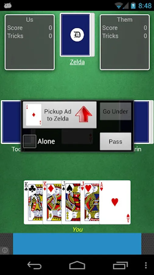 And one final note, the computer does not cheat nor does it have knowledge of its partner's cards! Euchre comes down to whomever makes the call, so be aggressive!