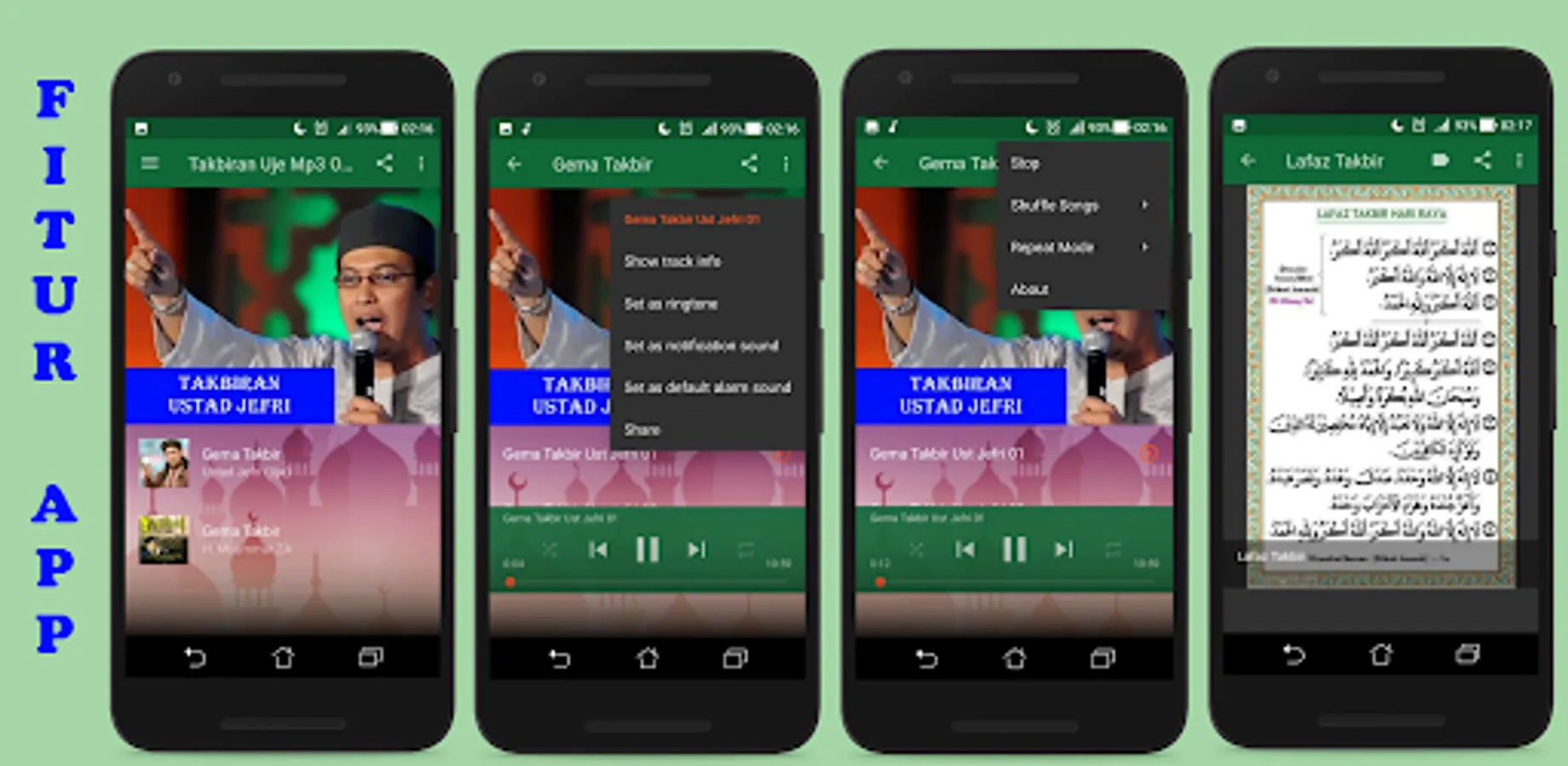 Takbiran Uje Mp3 Offline is an audio player application for the echo of Ustad Jefri's takbir songs. The uje takbiran application can be run offline and can be played non-stop (Continuously).