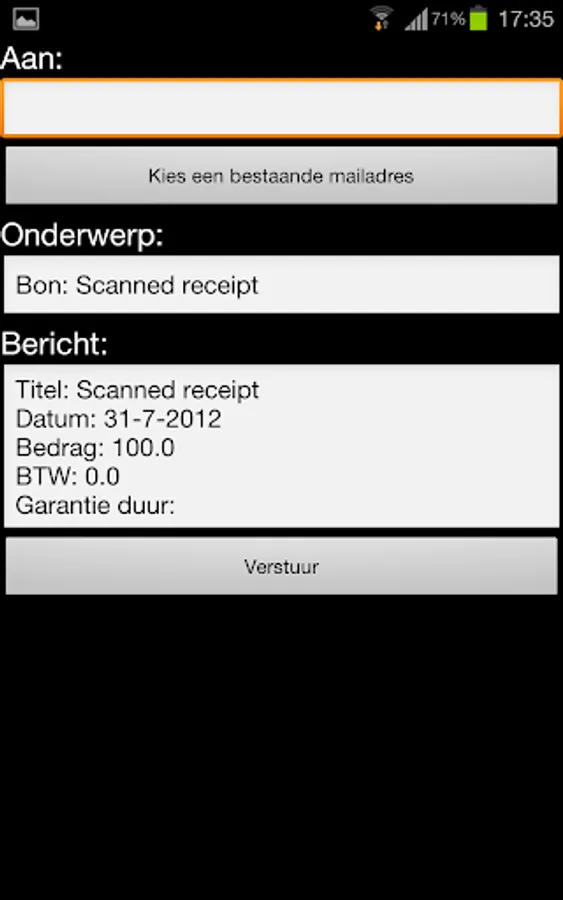 * Bug notice: it may occur that a picture must be taken twice or that when the camera is turned (after taking the picture) the receipts isn't processed properly. Solution: before taking the picture, put yout camera in the right modus (landscape or horizontal). We are working on it!