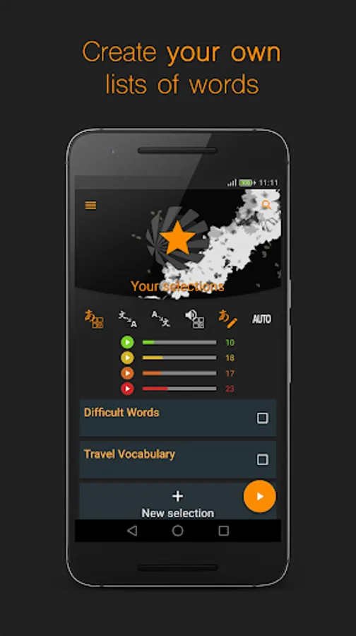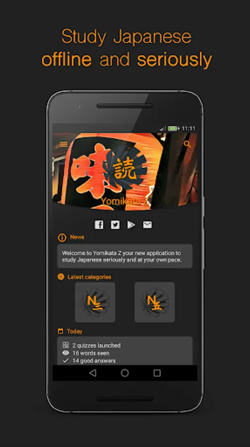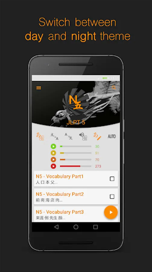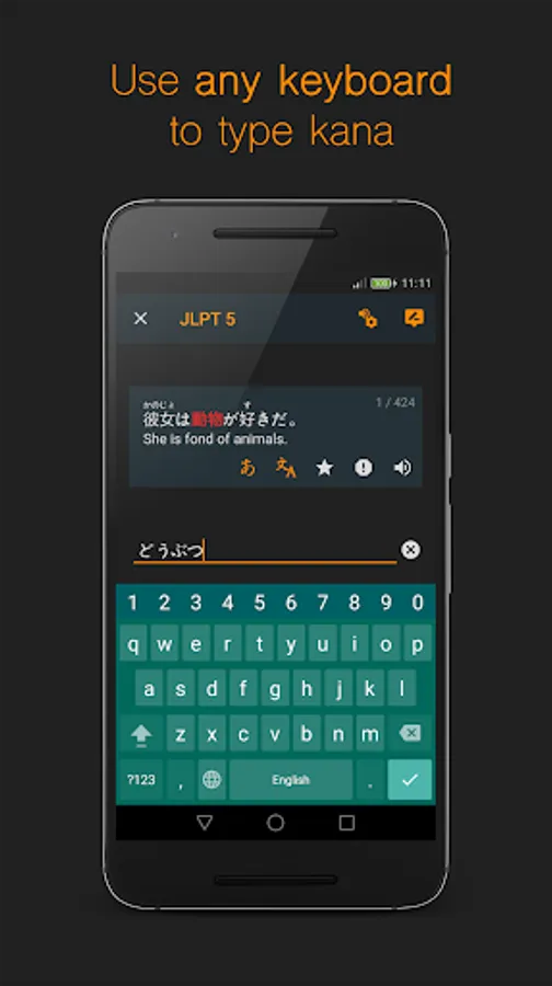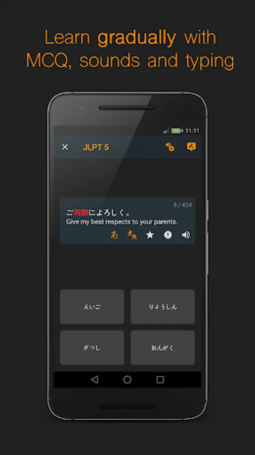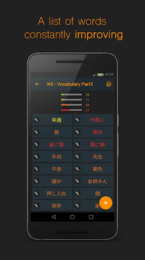 ** Study vocabulary for JLPT from level N5 to N1 with a database of 7500 words constantly enhanced by user feedbacks