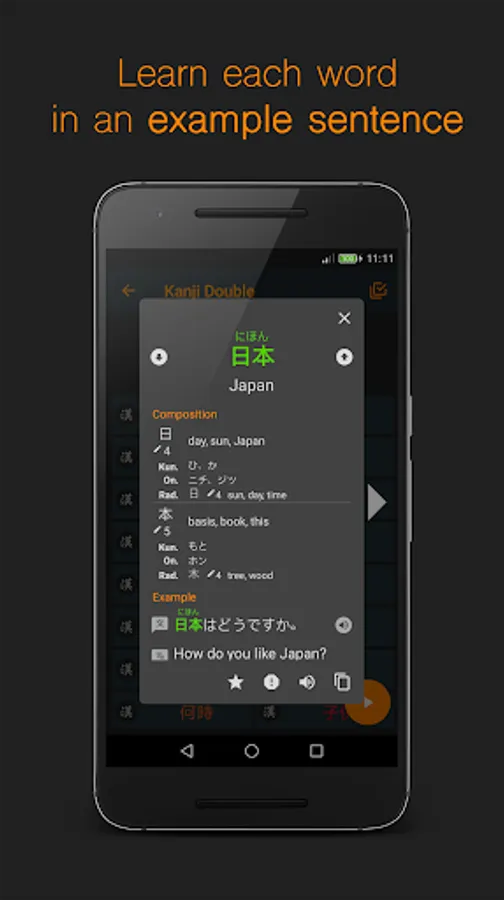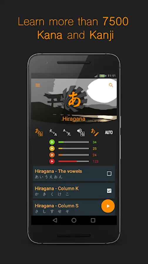 ** The only application where you learn Hiragana, Katakana and Kanjis in a context sentence