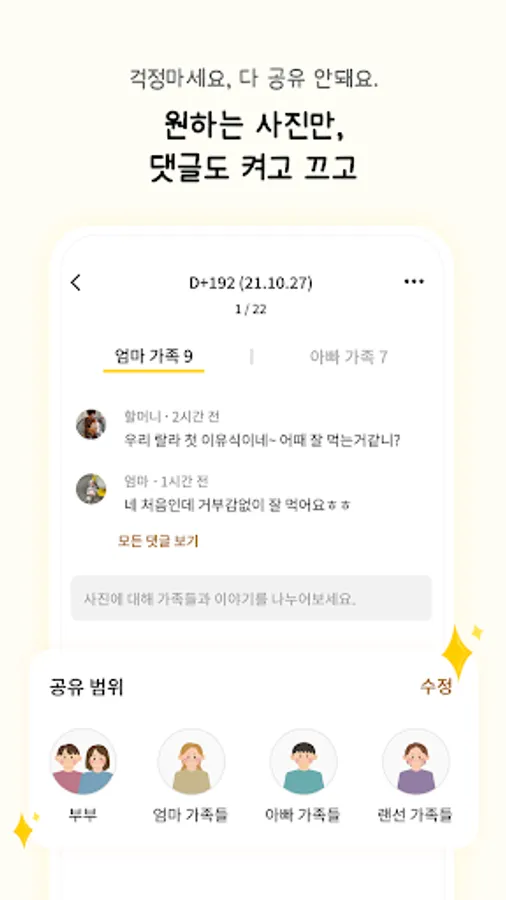 - You can manage the comment window by dividing the mom family group and the dad family group.