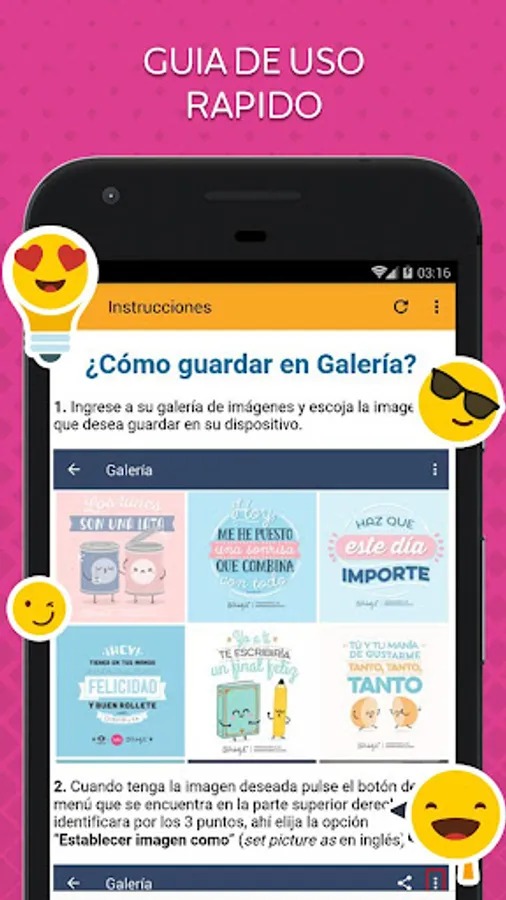 Easy and simple to use, scroll through our gallery, and after choosing the one you like, select the option to download, and once on your phone, and you can send to your friends.