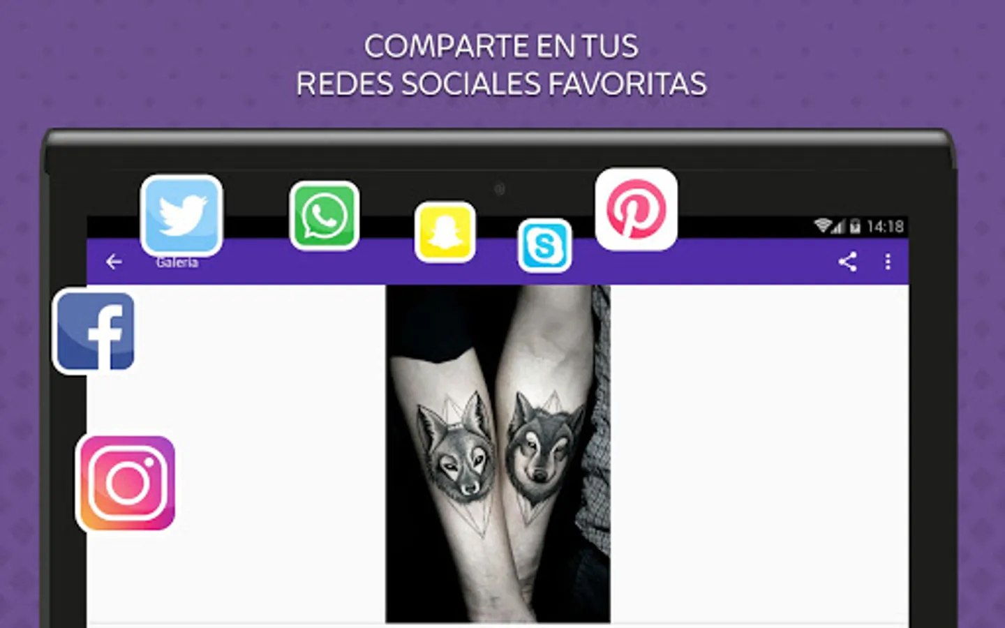 Best choice to get a tattoo! In this great application, tattoo images will find a selection of the best images with tattoo designs can download and share with friends through your favorite social networks.