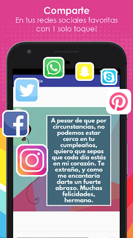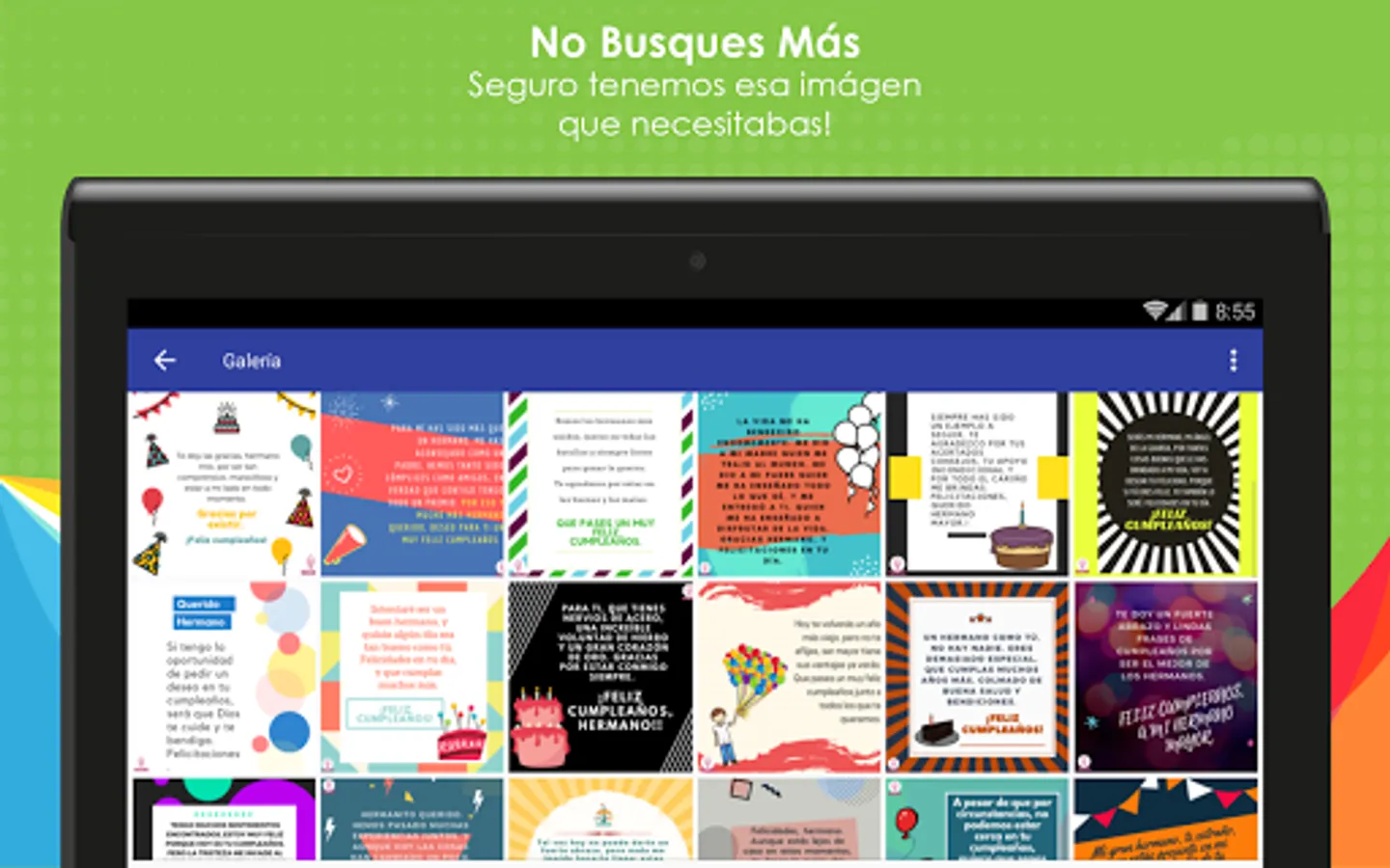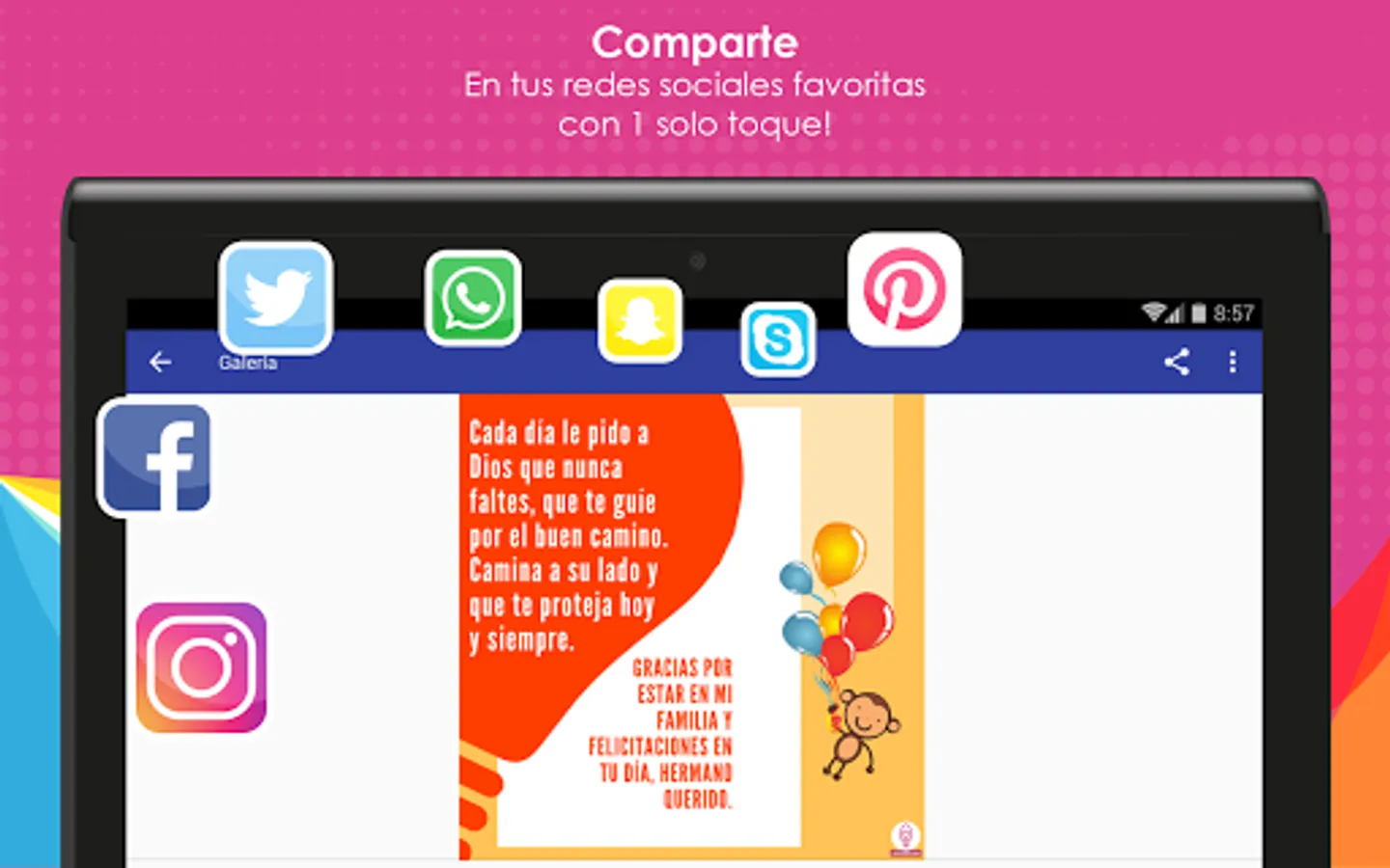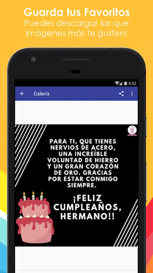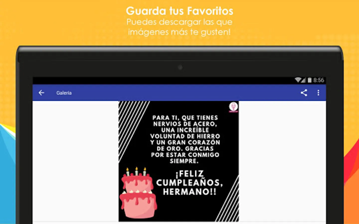 Dare to celebrate your brother's birthday, in a unique and original way with our Happy Birthday Brother app. Share and disseminate our content, so that everyone around you, celebrate with you, that special and important date in your family.