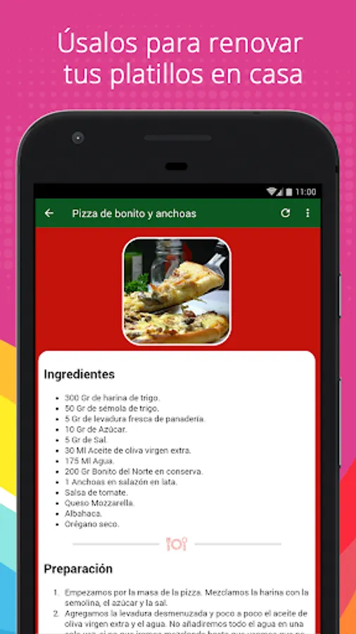 We hope you enjoy the content of Recipes of Pizzas to the full, our application offers you a variety of recipes and images. do not forget to share them with your friends on social networks.