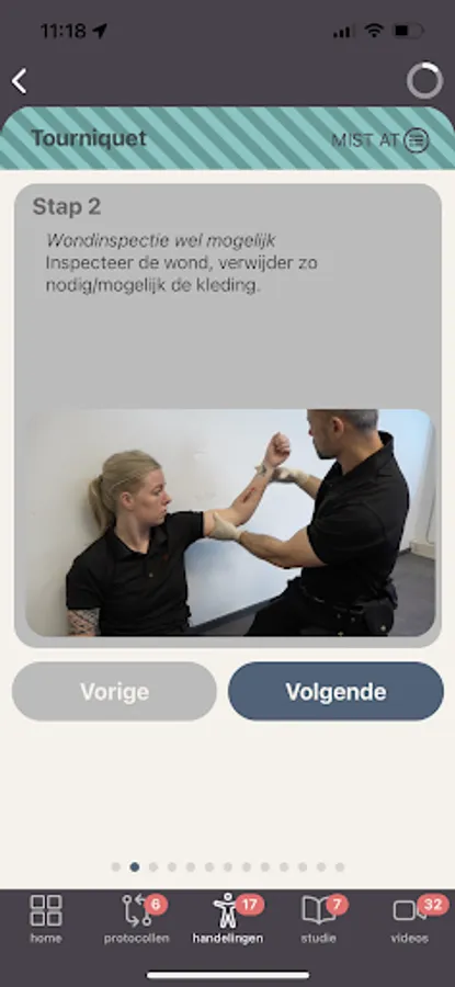With this app you can easily refresh your memory by going through the protocol step by step. Information is at your fingertips at any given time. No complicated search functions, but a clear app that is there to familiarize you with the MARCH protocol. Are you not out of protocol? No problem, the actions are described step by step in the training section of the app.