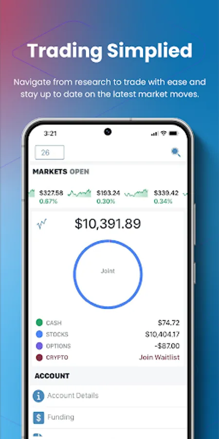 - Invest in stocks, ETFs, equity options, and index options with a single click