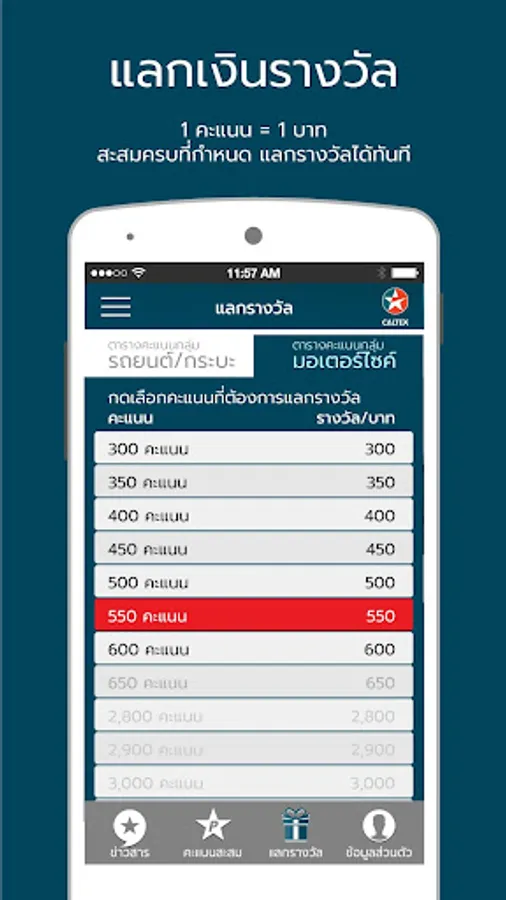 App option to earn points and redeem rewards for Caltex Oil Technicians in 3 easy steps.